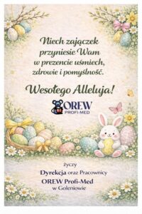 Pragniemy złożyć życzenia zdrowych i pogodnych Świąt Wielkanocnych, obfitości na świątecznym stole, smacznego jajka oraz wiosennego nastroju w rodzinnym gronie.